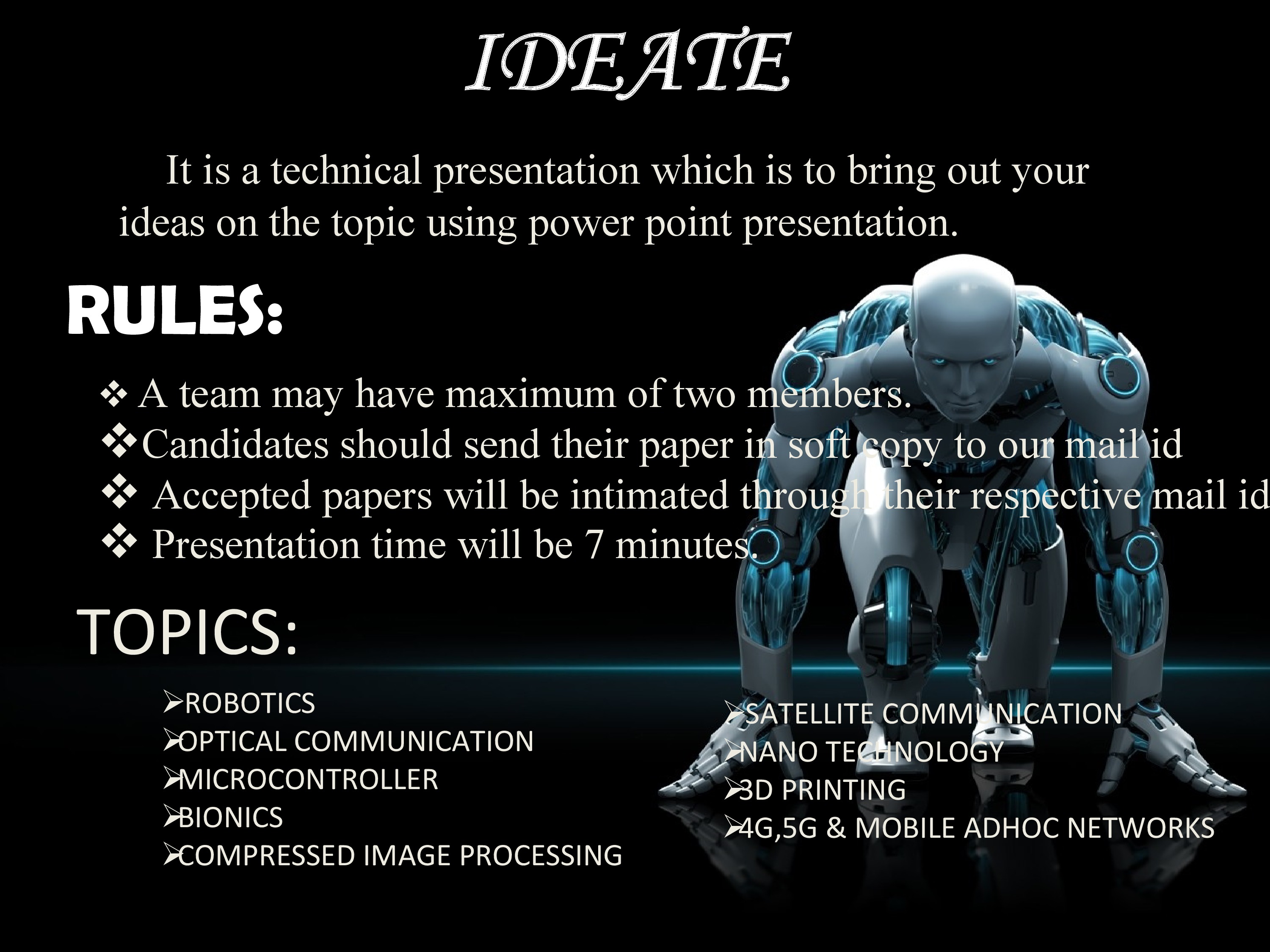 It is a technical presentation which is to bring out your ideas on the topic using power point presentation.Read More