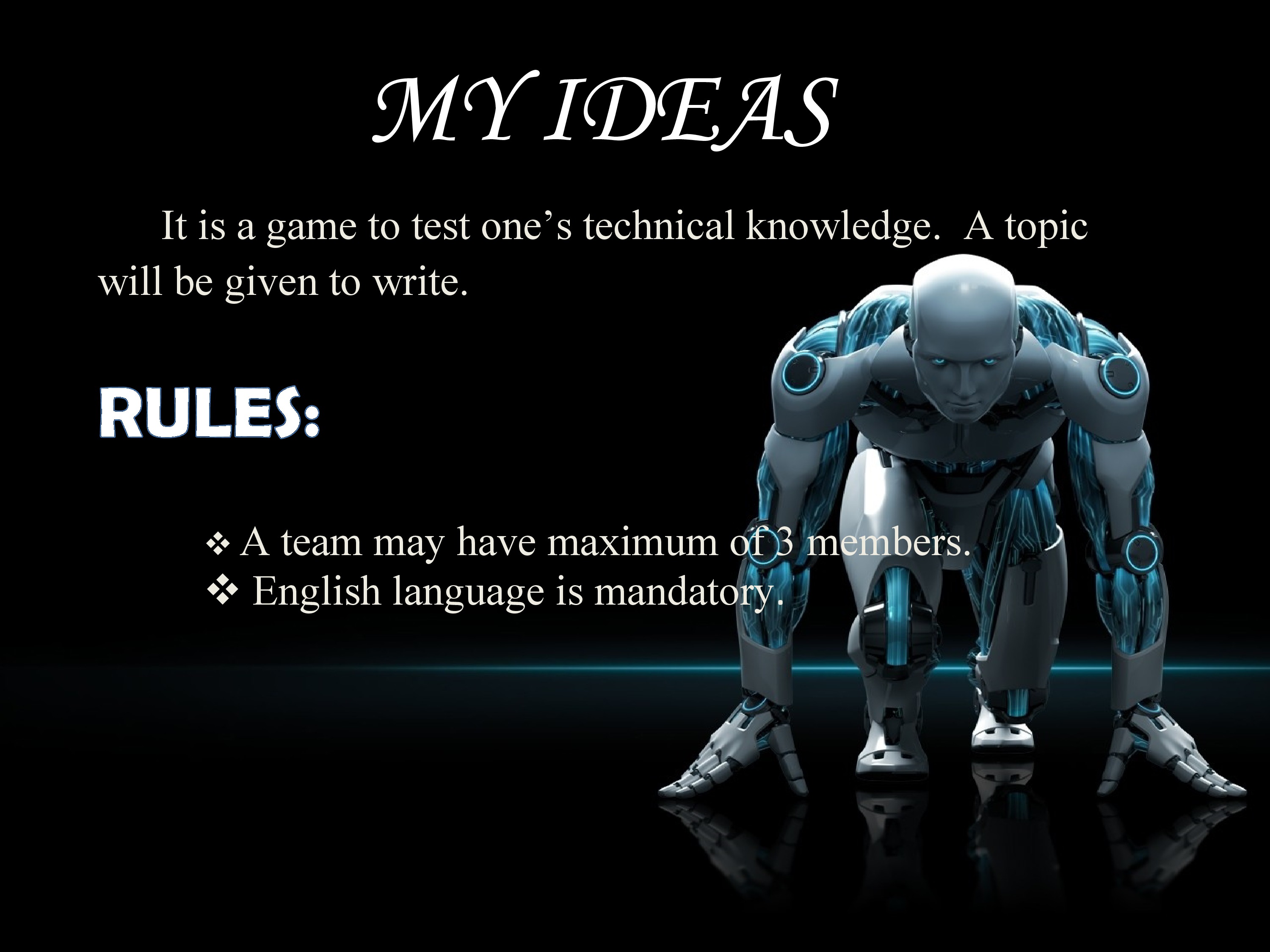 It is a game to test one’s technical knowledge. A topic will be given to write. Read More